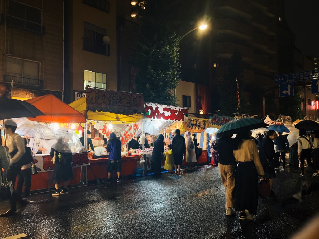 The Japanese take pride in everything, and you best believe their firework festivals are overkill. The largest one I attended was the Adachi Fireworks Festival, which according to this source lasted an hour, included 13,500 fireworks, and was attended by over 600,000 people. And that’s merely the tip of the fireberg. Fun observation at the event: there was extensive choping behaviour. Groups of people came in advance (probably the day before) to lay out their picnic mats to demarcate the zones where they would sit on the grass. Some of them even had family names pasted in scotch tape over them. What was most fascinating was how those choped spots were thoroughly respected, even if the occupiers did not turn up. So in the middle of a packed area you would have a group of people huddling real close to each other on a small mat while an empty large mat that was not theirs lay right beside them. The event was free, but key areas and view spots were reserved and could be purchased in advance. There was even a package to sail down the river and have a lovely dinner below the fireworks.
