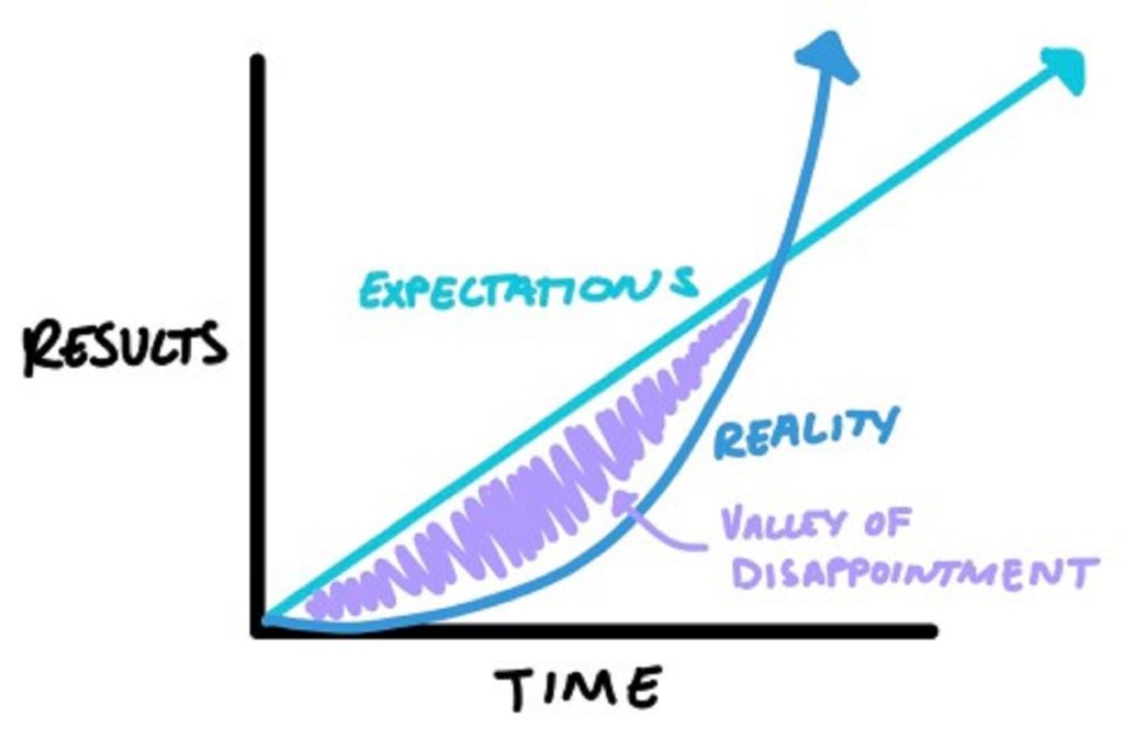 - However, we often do not see changes early in the process even though we expect to. This is called the valley of disappointment.