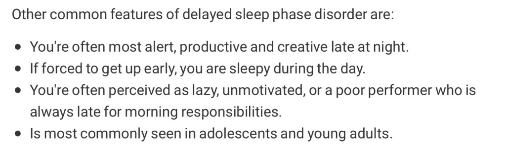 Speaking of physical consequences, I’m a textbook case of DSPD. Consider: